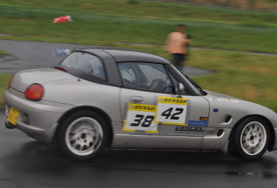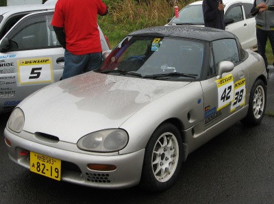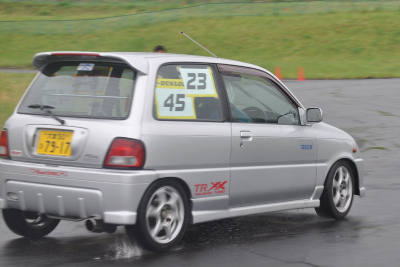 「えり〜ぜ」のダブルエントリーで東京から参加してくれたゼッケン38番「蓮(はす)」。 蓮と言えばロータス。「えり〜ぜ」といい、お二人とも実はロータスマニアですか?! でもロータスでDCTMに出られるというと、エランや初代のエリートになるしな・・・いっそカプチーノ改エランというのはどうでしょう? 一方走りの方はなかなかで、ベストタイムはオーナーである「えり〜ぜ」に続く2番手。ドライ路面なら優勝候補? |