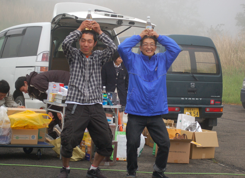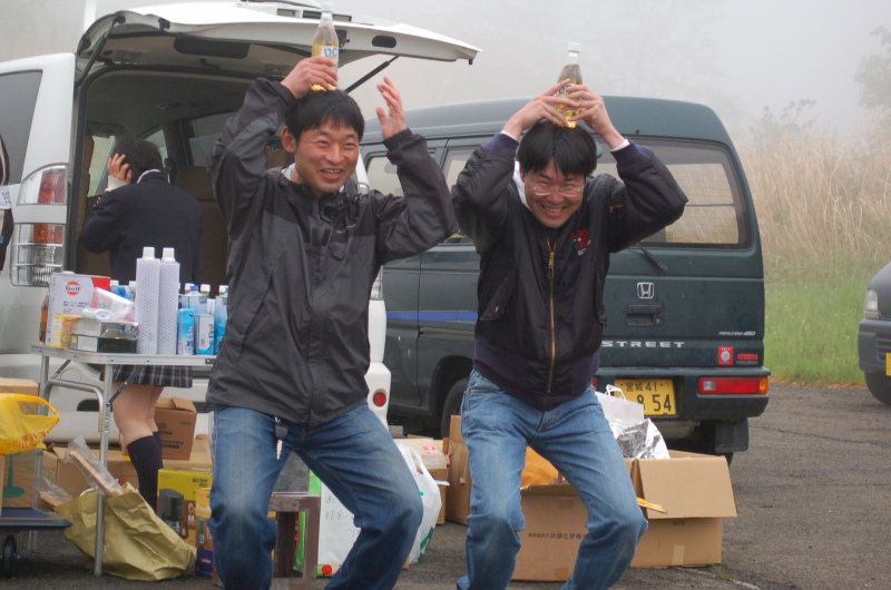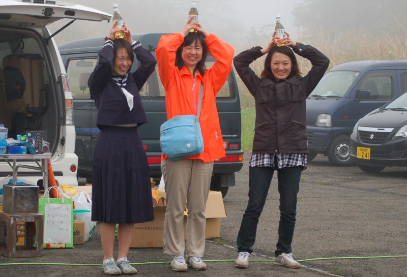 Lクラスもこのポーズでやっちゃいますか・・・というわけで、左から1〜3位。 優勝した「くまぷぅ」は、30年前くらい前のブルーフィルムで主演した・・・ゲフンゲフン・・・じゃなくて、今でも18歳らしいから現役同然のセーラー服少女???ん?ん?? ちなみに写真ではニコヤカに寄り添って写ってますが、最初 「えぇ〜一緒に思われたらヤダァ〜!」パシュルルルッ!とフルブーストで横に離れていったのは2位以下のお二方。 いや・・・あの、記念撮影・・・・(爆) 次は3人揃ってセーラー服はいかが?いや、酒が出てきそうな雰囲気になりそうだから、やっぱりやめておこう(笑) |