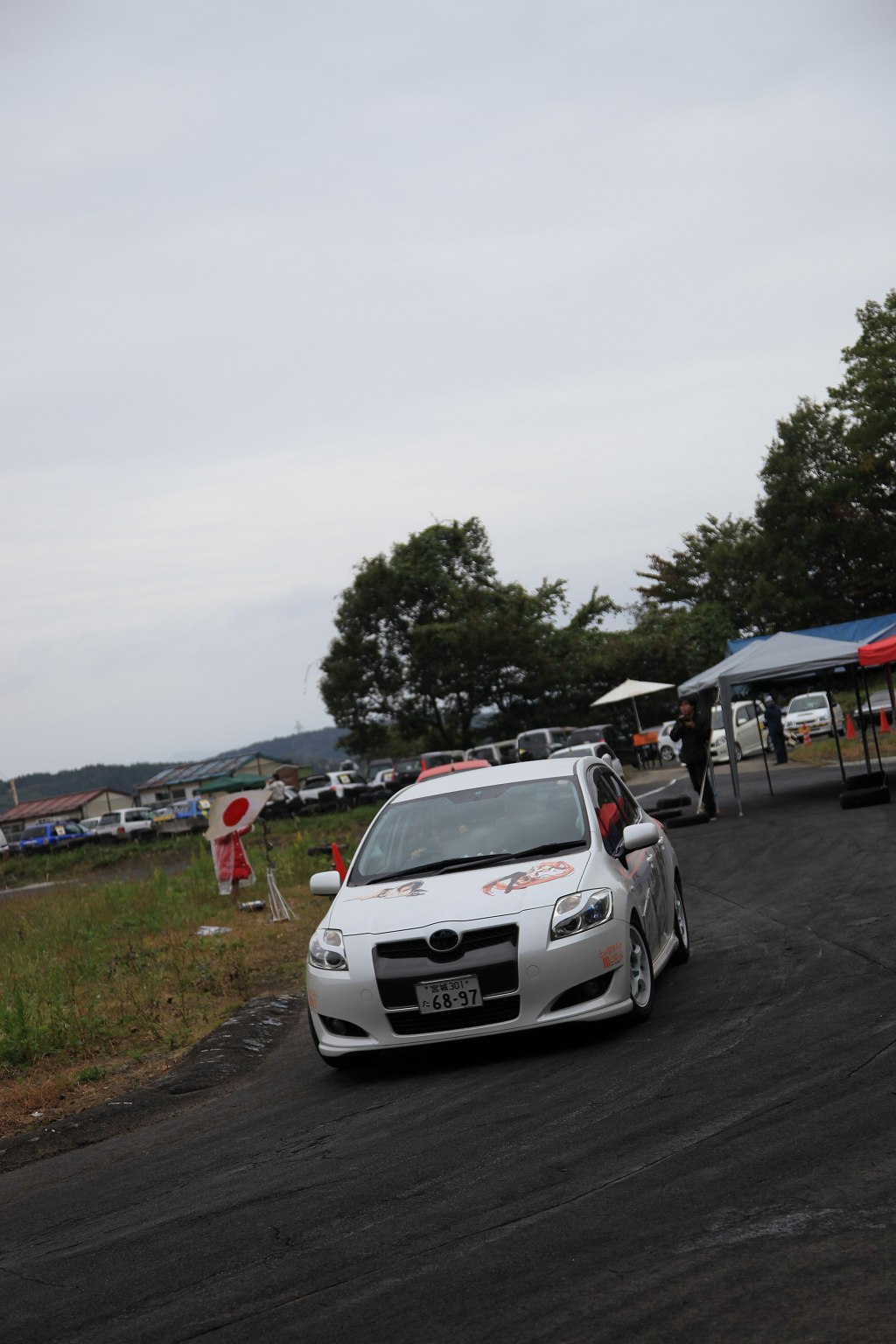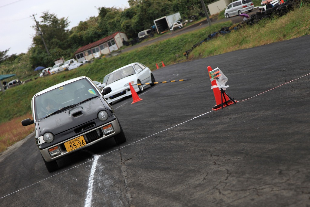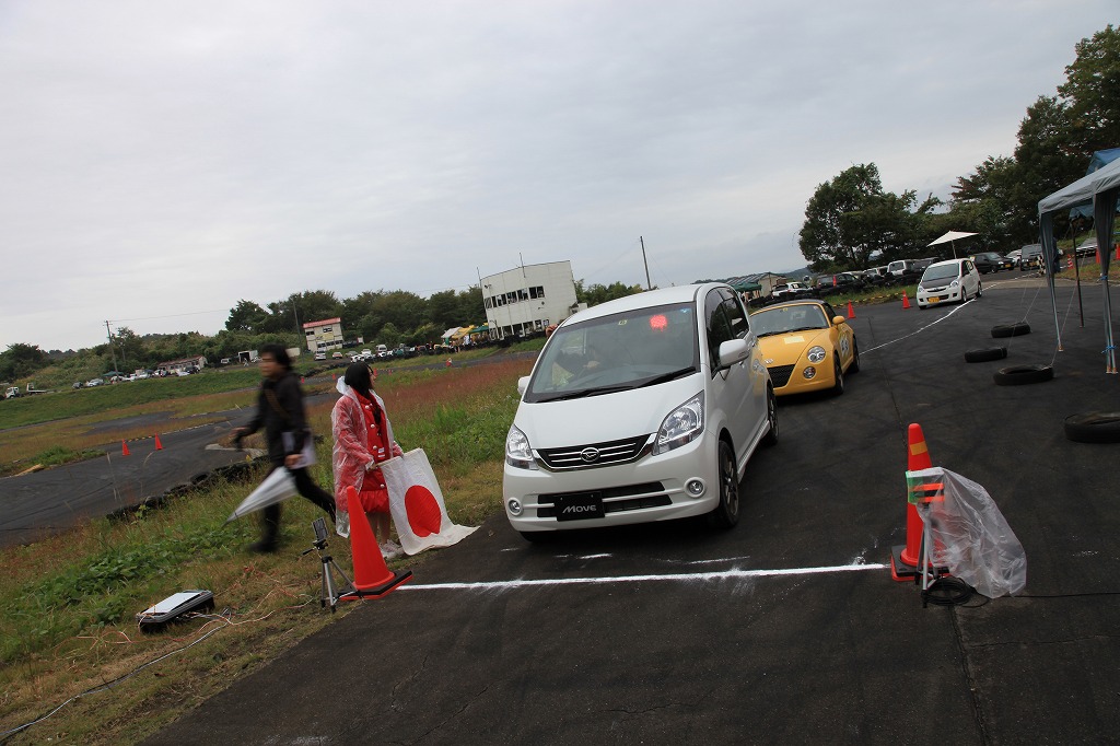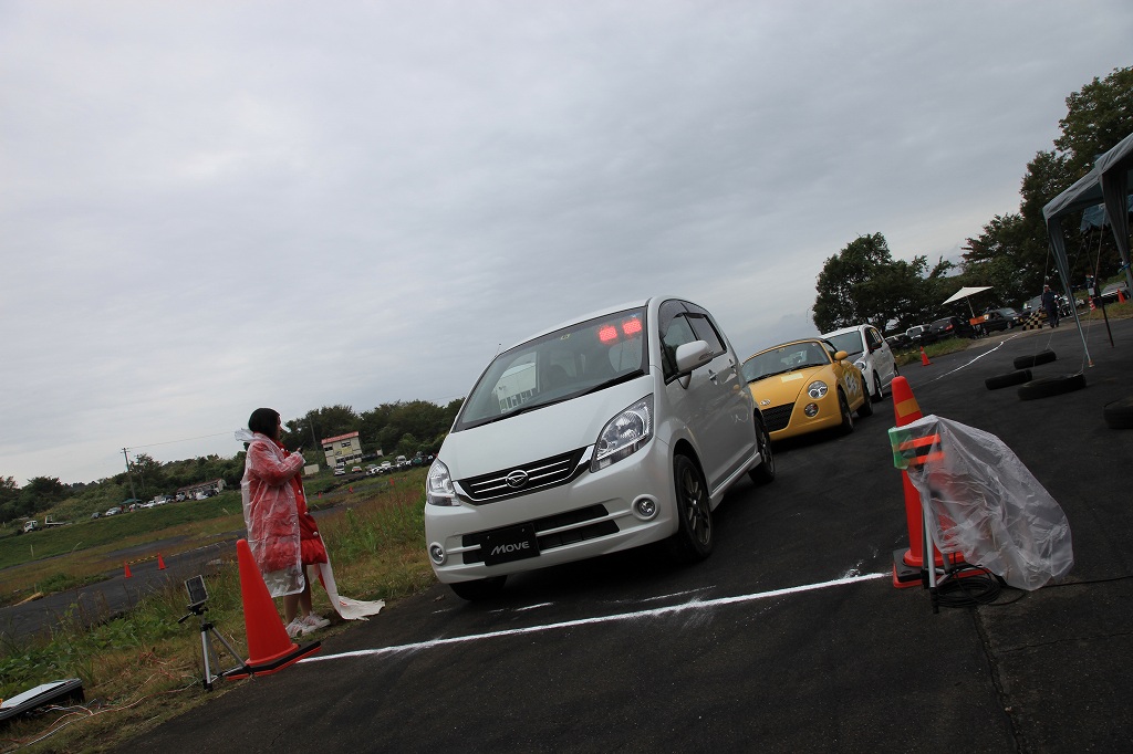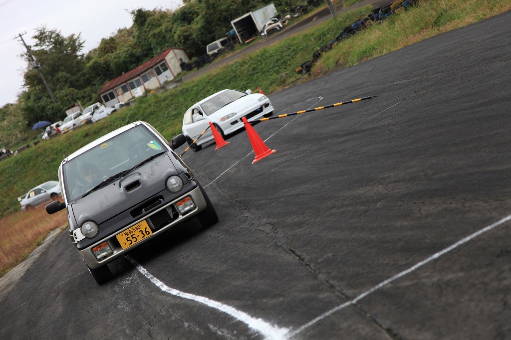 DCTMでは、初心者向けというだけでなく、当日の路面コンディションや、いつもと微妙に違うパイロン位置の確認を実車で行い、より楽しんでもらうべく、こうした「慣熟走行」を行っています。
