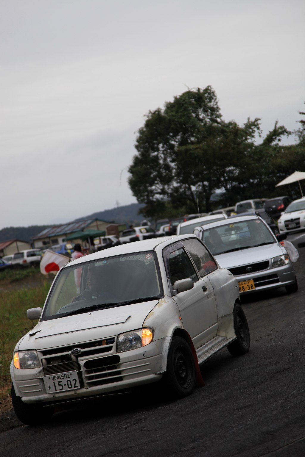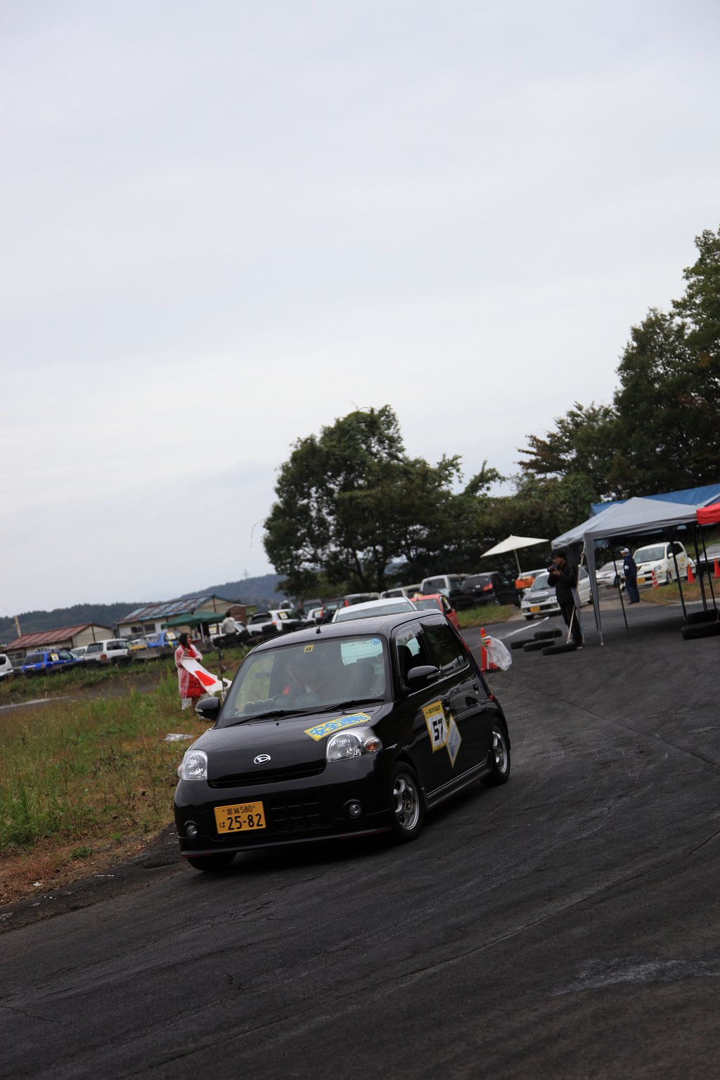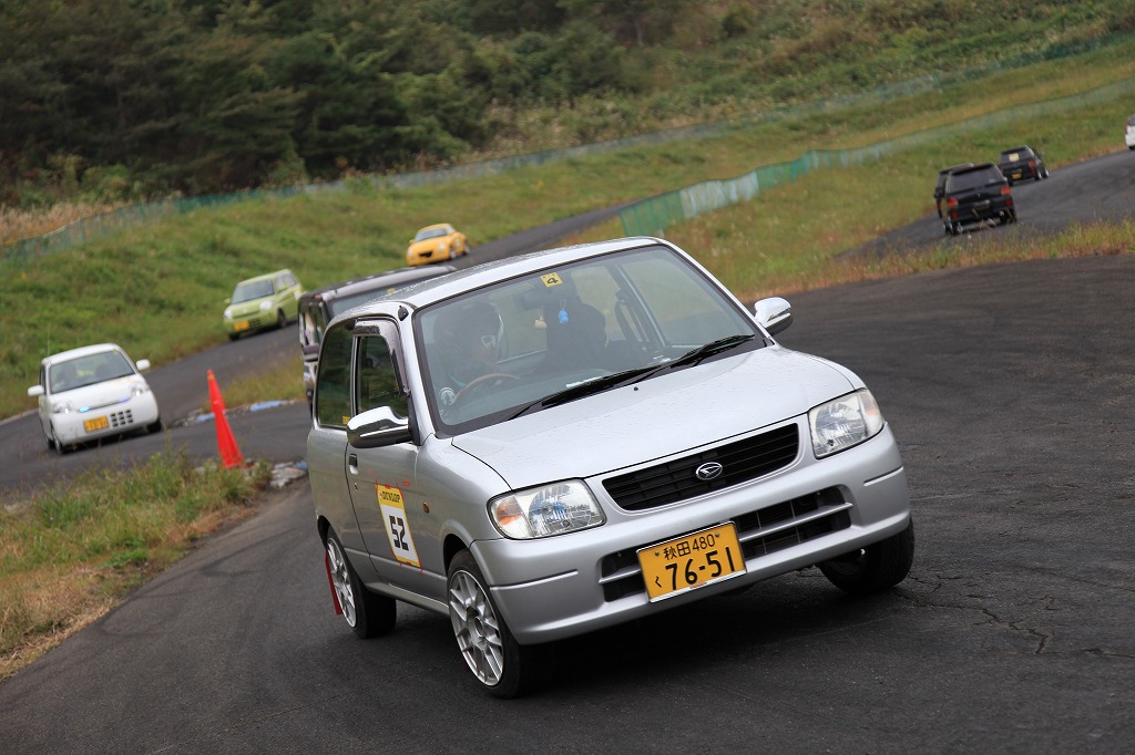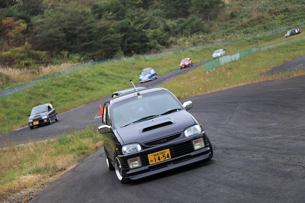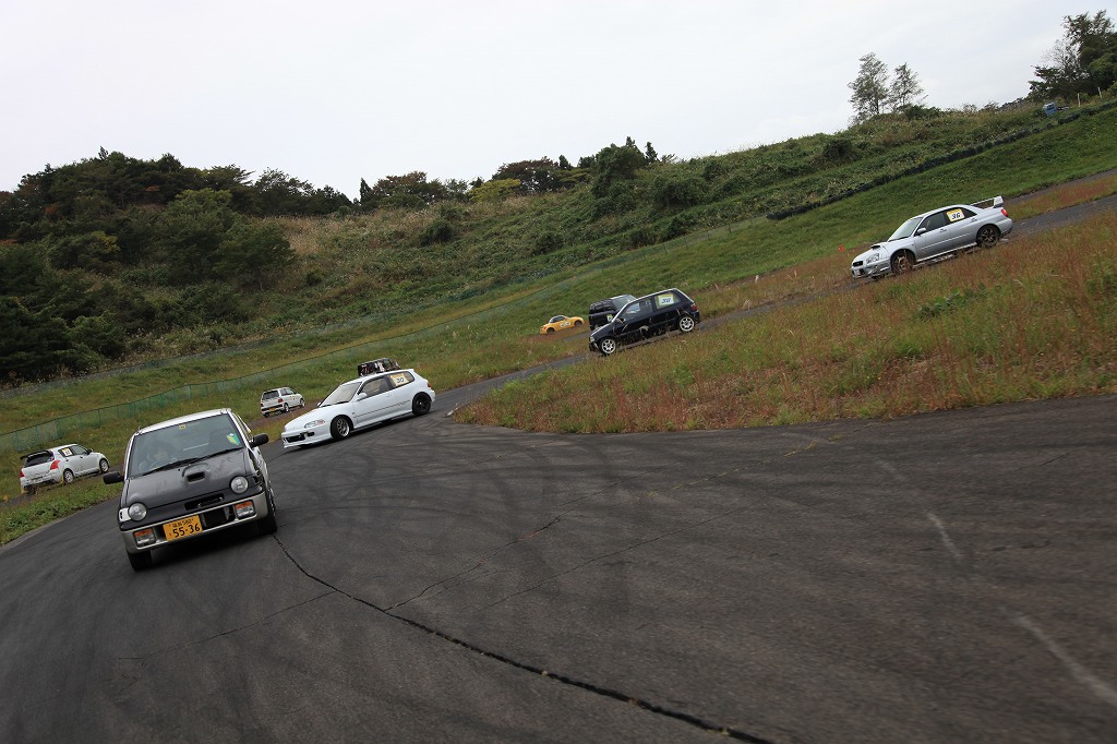 先導車をゴール前スラローム担当オフィシャルの菊田さんが駆るL710Vミラバン改ダートラ車に変え、第2グループの慣熟開始。