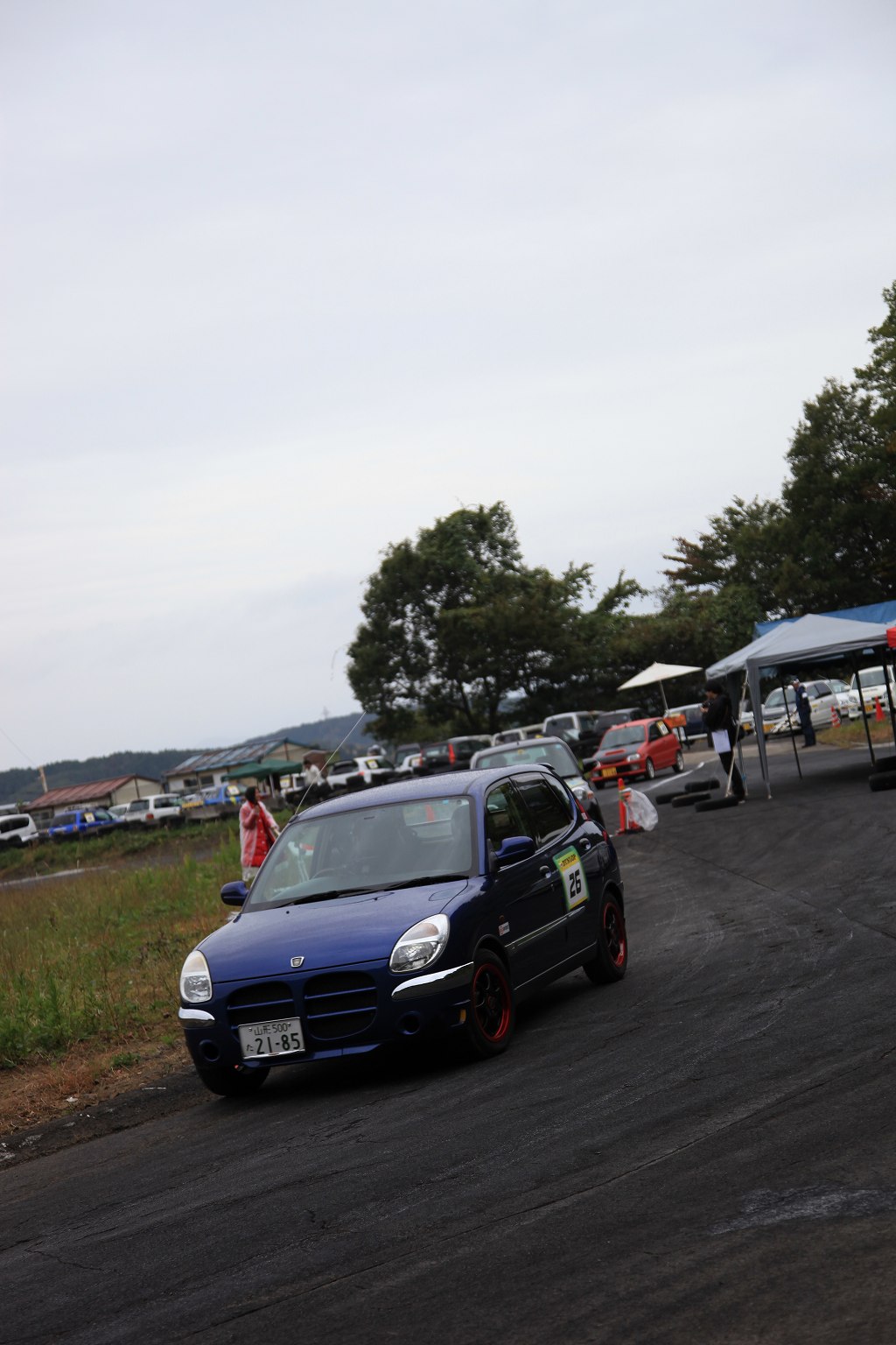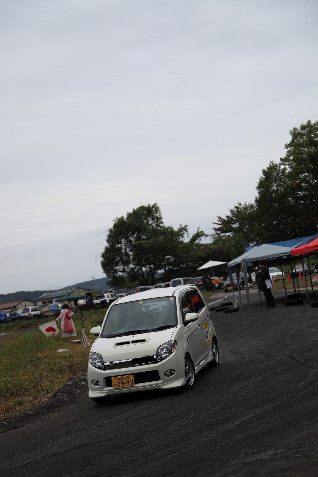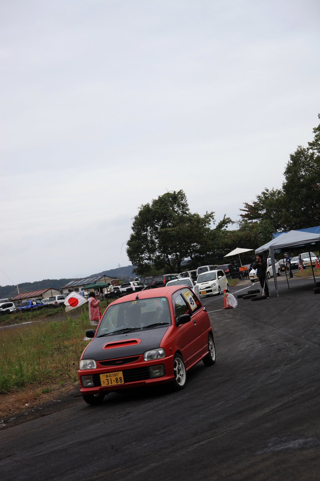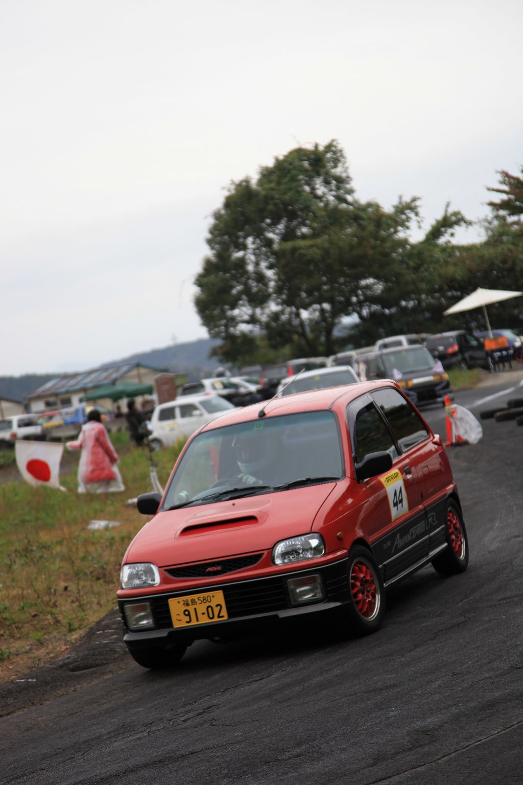 先導車をゴール前スラローム担当オフィシャルの菊田さんが駆るL710Vミラバン改ダートラ車に変え、第2グループの慣熟開始。