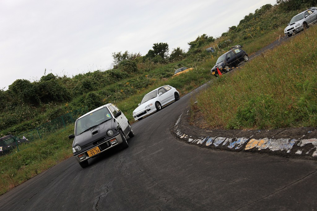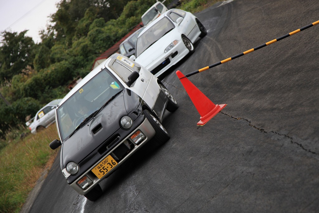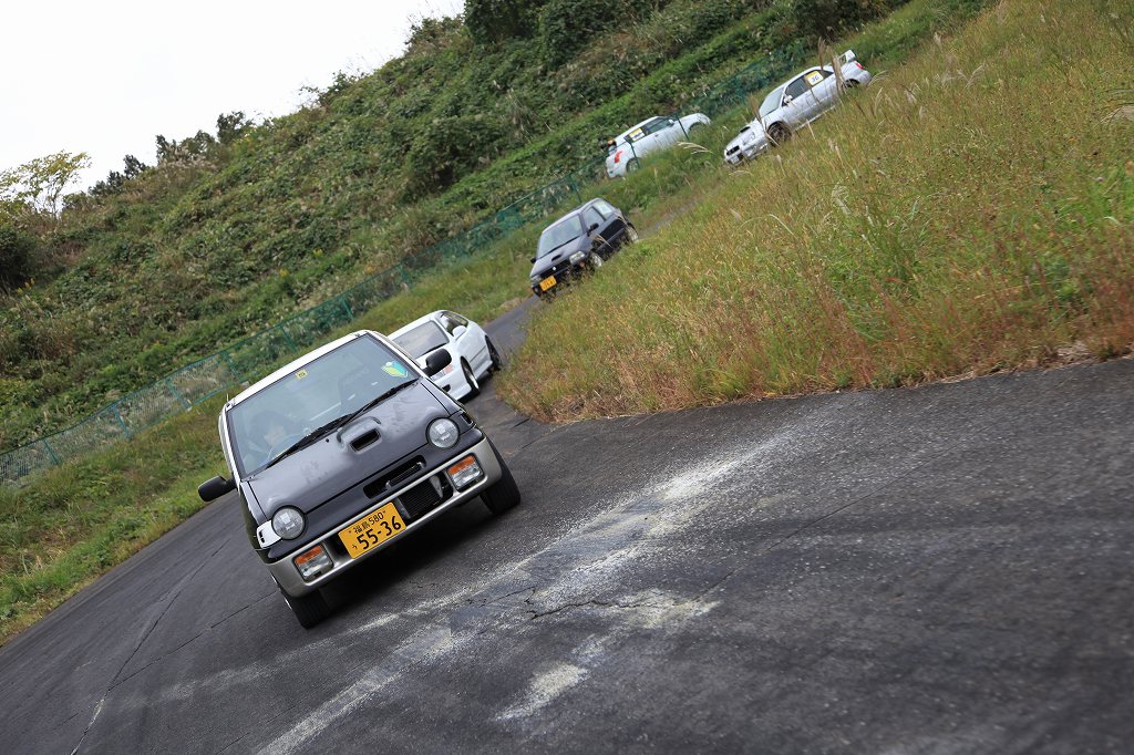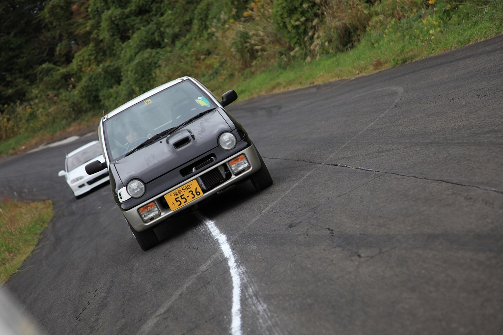 第1グループは今回コースオフィシャル「崖の上のヘアピン」担当の阿部さんが、愛車のL175Sム^ヴで先導。