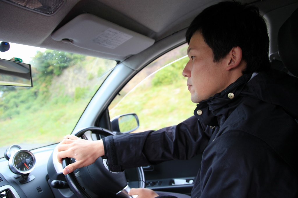 第3フループは、先導車の計時担当鈴木さんのブーンX4に佐藤圭が乗り込み、ハコ乗り撮影を敢行!