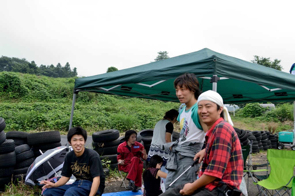 本番走行待ちの間に、チームF4はノンビリ休憩したり(左)