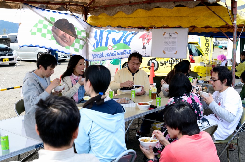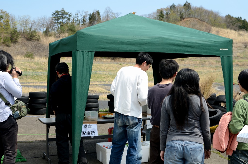 3ヒート目が終わると、みんな一斉にコントロールタワー横のサザンカレー配給所に並びます。